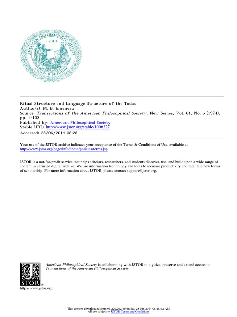 M B Emeneau Ritual Structure And Language Structure Of The Todas Pdf Prayer Rituals